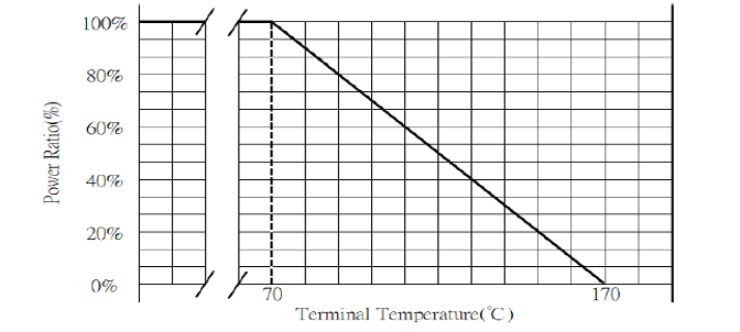 为电阻在环境温度高于70°C,额定功率必须走低比罗按照曲线
