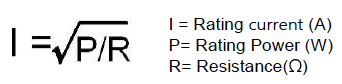 以下公式可用于确定额定功率的直流(直流电)或交流(交流电)(RMS,均方根值)。但是,如果结果值超过规定标准的最高电流(第5段),则使用最高的正常额定功率
