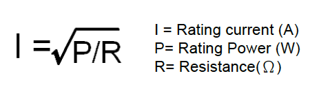 额定电流 以下等式可用于确定正常额定功率的 DC(直流)或 AC(交流)(RMS,均方根值)。 但是,如果结果值超过规定标准的最高电流,则应使用最高的正常额定功率 |