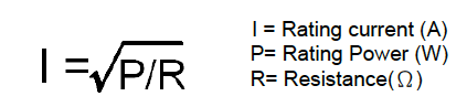 下面的方程可以用来确定直流电或交流电(RMS, root平均平方值)的额定功率。但是,如果结果值超过所调节的最高电流标准(第5段),最高的正常额定功率是使用