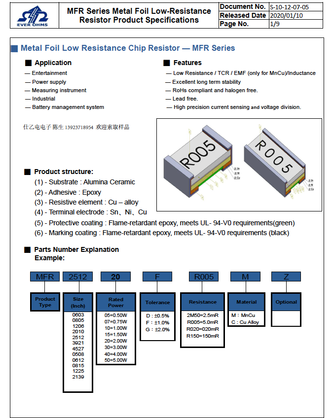 2.合金贴片电阻采用符合高功率电气特性、高纯度、高导热、低温漂及耐高温的特殊合金,一体成型无切割的结构,大幅降低电路板上的散热面积,可达到几乎无电感值。合金电阻作为电流载体,阻值精准,温度稳定性,产品的安全性,稳定性明显高于普通的陶瓷电阻。同时金属的导热性也是它同其他电阻一大优势。特别是在电源以及其它相关产品的应用中,瞬间的冲击电流,短路电流或脉冲电流l产生时,合金当做首l选作为电流介质来检测电流。